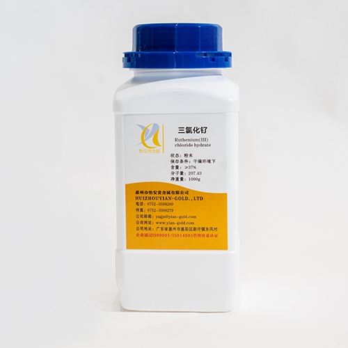 描述:三氯化钌是化学物质,分子式是RuCl3。为带有光泽的晶体颗粒,一般呈灰褐色或暗红色,有腐蚀性,极易潮解,醇、丙酮和乙酸乙酯中,在热水中分解。用于多相催化或均相催化,电镀、电解阳极,电子工业等重要化工原料。性质:有α型及β型两种变体及水溶性R···